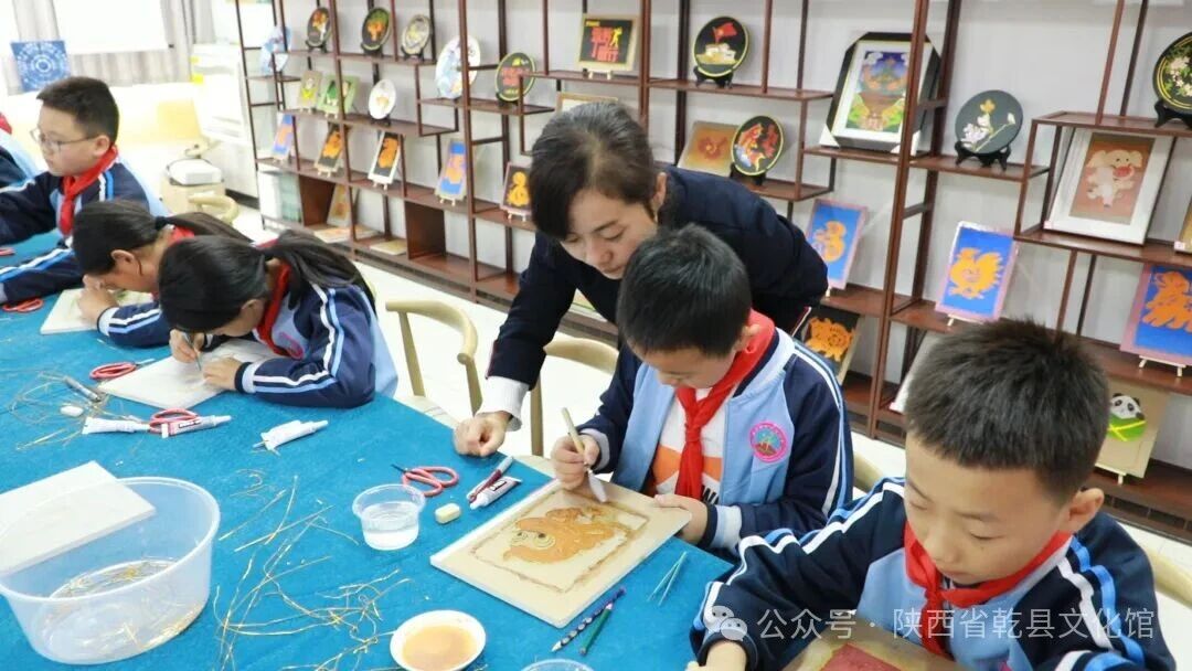 乾县城关亓父小学副校长宁静说:“本学期,我校设立了“青衿非遗坊”,特聘了乾州剪纸、金箔丝艺术画传承人王侠老师。采用赏非遗之美、持文化之根、学技艺之法、做匠心制作的沉浸式教学模式。今后我校会把更多家门口的非遗请进校园,让学生体验沉浸式非遗传承,让大家亲身体验学习。”