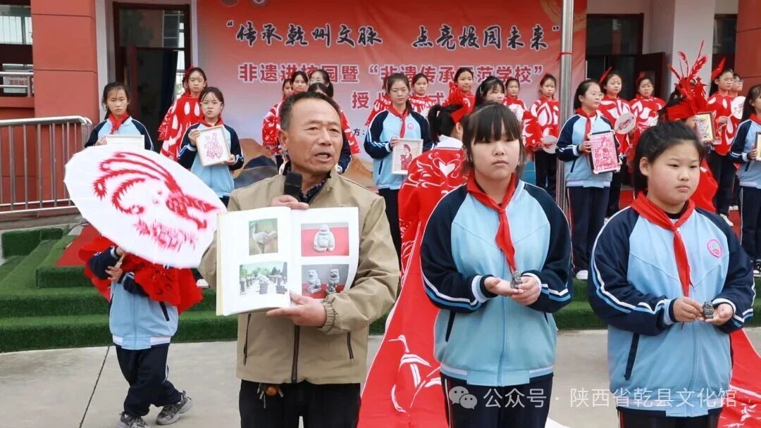 10月17日下午,我县“传承乾州文脉 点亮校园未来”非遗进校园暨“非遗传承示范学校”授牌仪式在城关亓父小学举行。