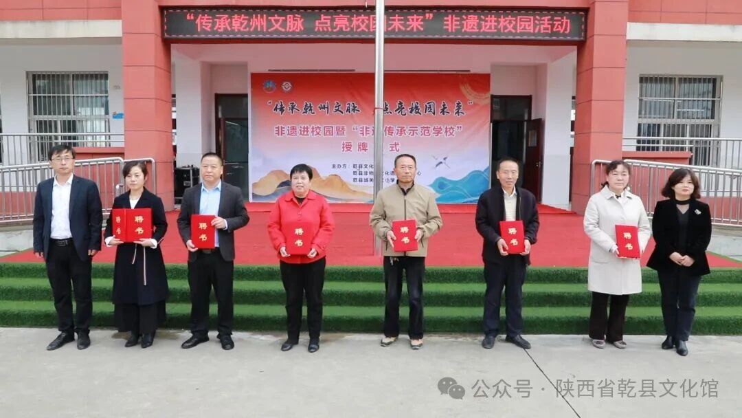 10月17日下午,我县“传承乾州文脉 点亮校园未来”非遗进校园暨“非遗传承示范学校”授牌仪式在城关亓父小学举行。