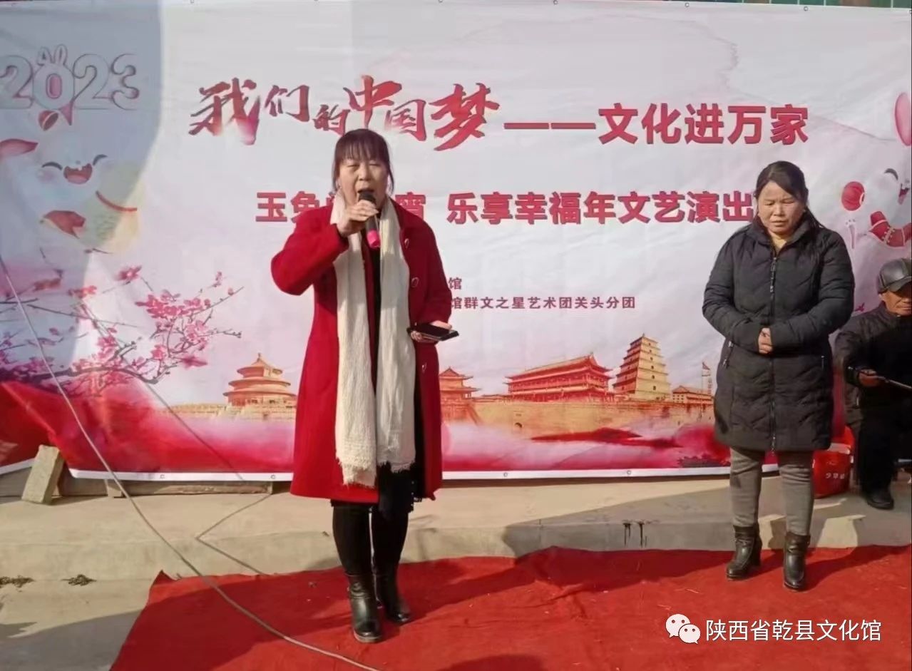 2月6日,由乾县文化馆主办、乾县文化馆群文之星艺术团关头分团承办的“我们的中国梦,文化进万家” ——玉兔闹元宵,乐享幸福年文艺演出活动在梁山镇关头鹞子村举行,为当地群众奉上了一场精美的文化盛宴,营造了良好喜庆的节日氛围。